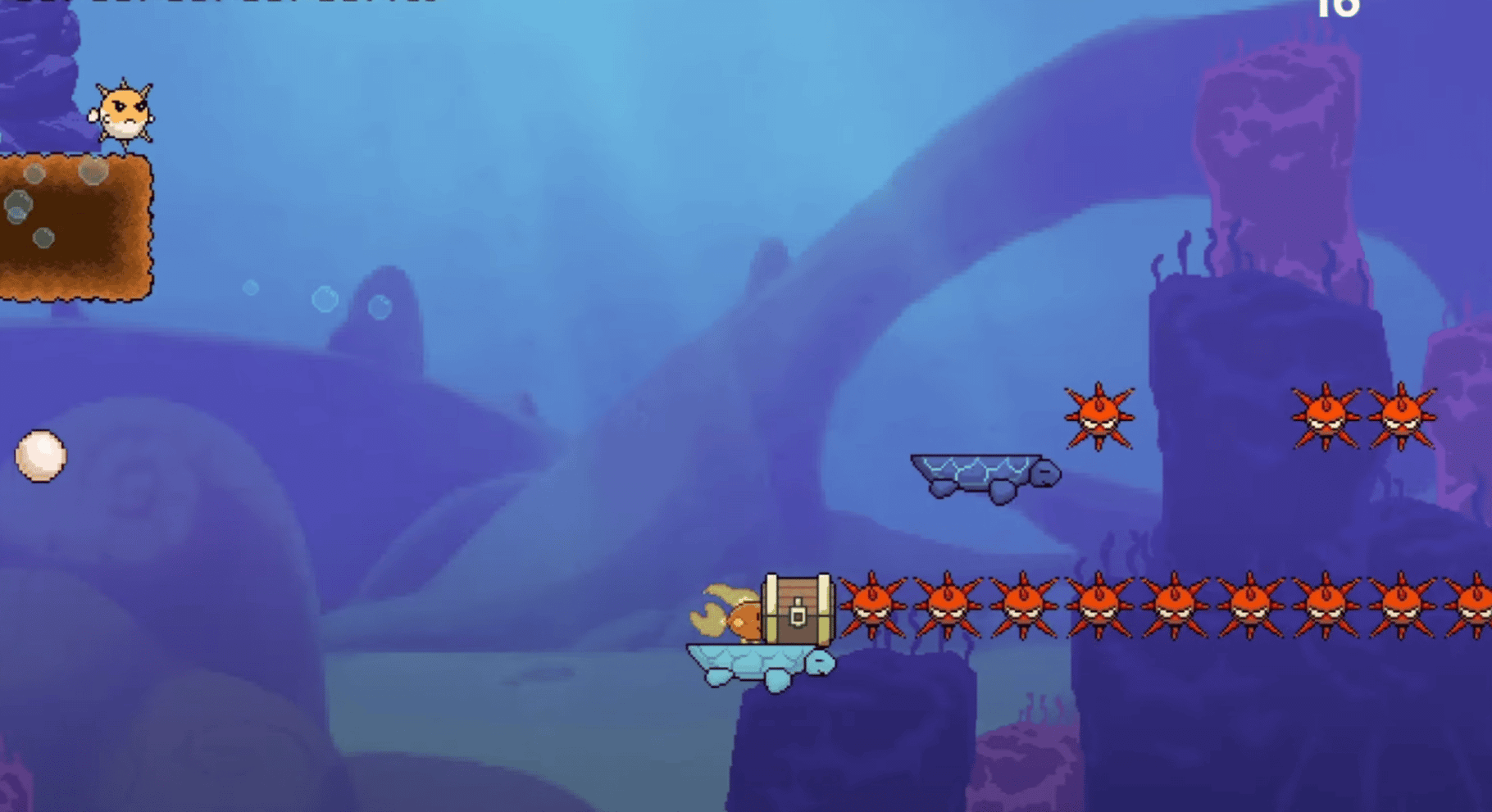 A cute 2d platformer where you clean up the sea of all these filthy treasures chests plaguing the various biomes. Swim, jump and bonk meanies on their head in many short but challenging levels with simple but tight controls.