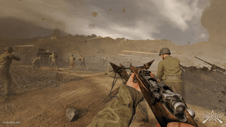 Enlisted is a squad-based first person MMO shooter covering key battles from World War II. The game carefully recreates weapons, military vehicles and the atmosphere of that era, while demonstrating really massive clashes of numerous soldiers, tanks and aircraft with artillery and naval support. Most of the Enlisted game modes simulate a battle involving several infantry platoons and gives the player control over a squad of soldiers with various roles (i.e. submachine gun soldier, sniper, radio operator, rifleman and others), a whole military vehicle crew or an aircraft pilot. One of the fighters is controlled directly, while others move and shoot independently following the player's general orders. In a situation where all the soldiers in the squad have fallen, a player respawns with the next available squad. This decision makes Enlisted battles look massive and spectacular while keeping the input of each individual player in the overall team victory quite significant.