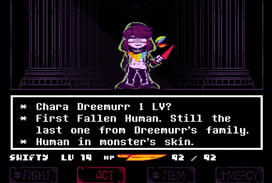 You finally reached the Final Coridor completing another Genocide route. You once again faced your nemesis - Chara Dreemurr, but this time something seems off. Ready your chainsaw, darling! The last actor is on the scene!