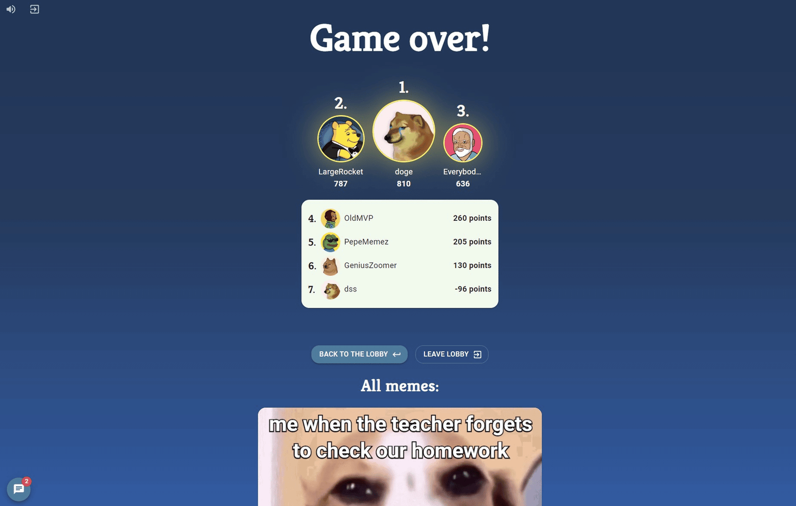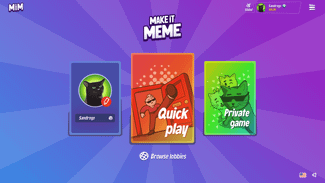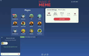 Make it Meme is the free party game, about creating and rating memes: Each player gets a random meme and has to think of a text for the meme within a given time. After that, the players rate each other's memes and award their Meme-Buddy. Whoever has collected the most points at the end wins!