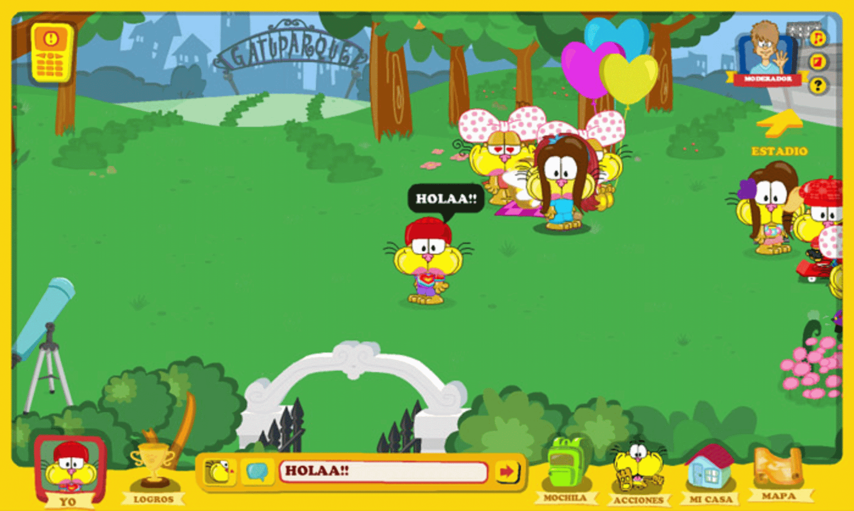 Mundo Gaturro is a virtual world for children specially designed so that they can play and interact with each other, in a safe environment controlled by moderators. In it, children can disguise their gaturros in an original way, tour the city and contact other children through chats or sending messages in safe mode. They can also have fun with individual and group games, earn coins and decorate their virtual houses
