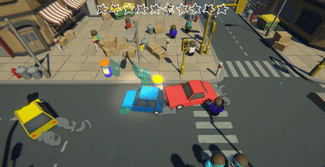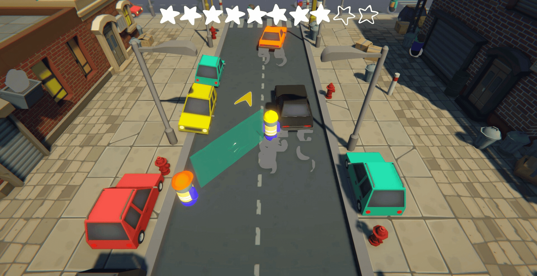 Together with Steve, your coworker, deliver glass to the construction site. Try not to damage the city too much.