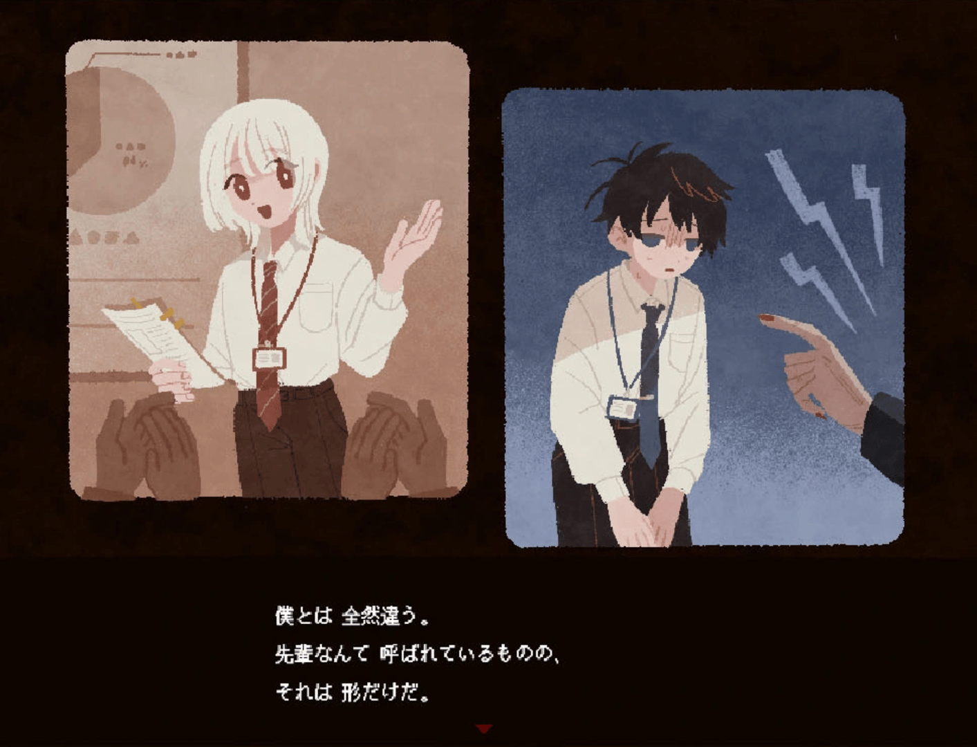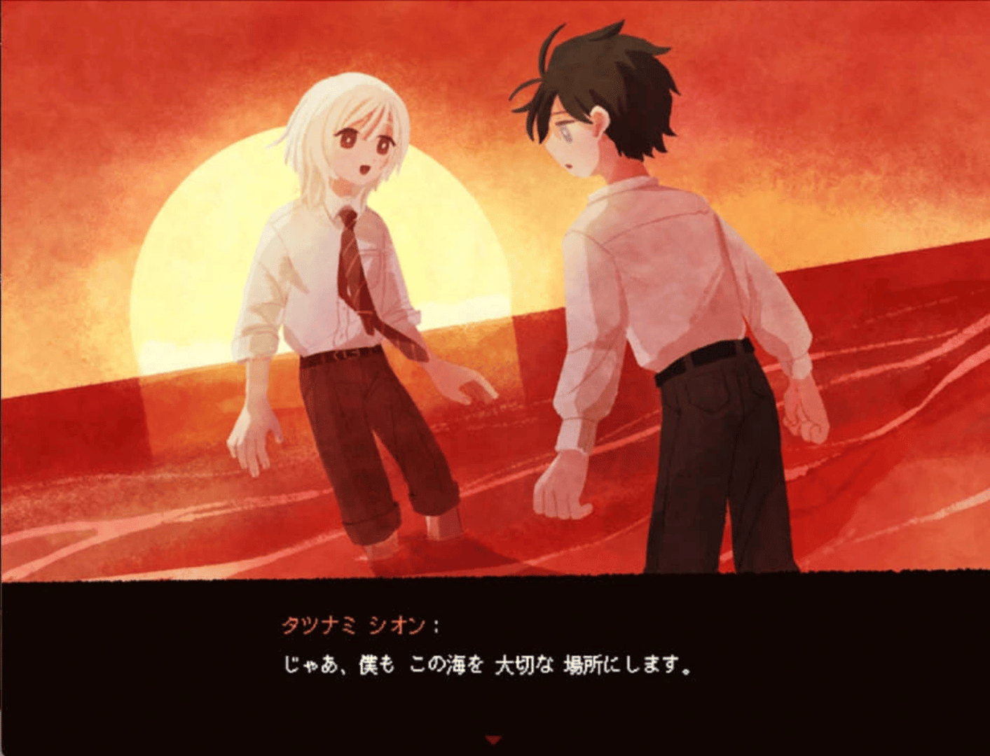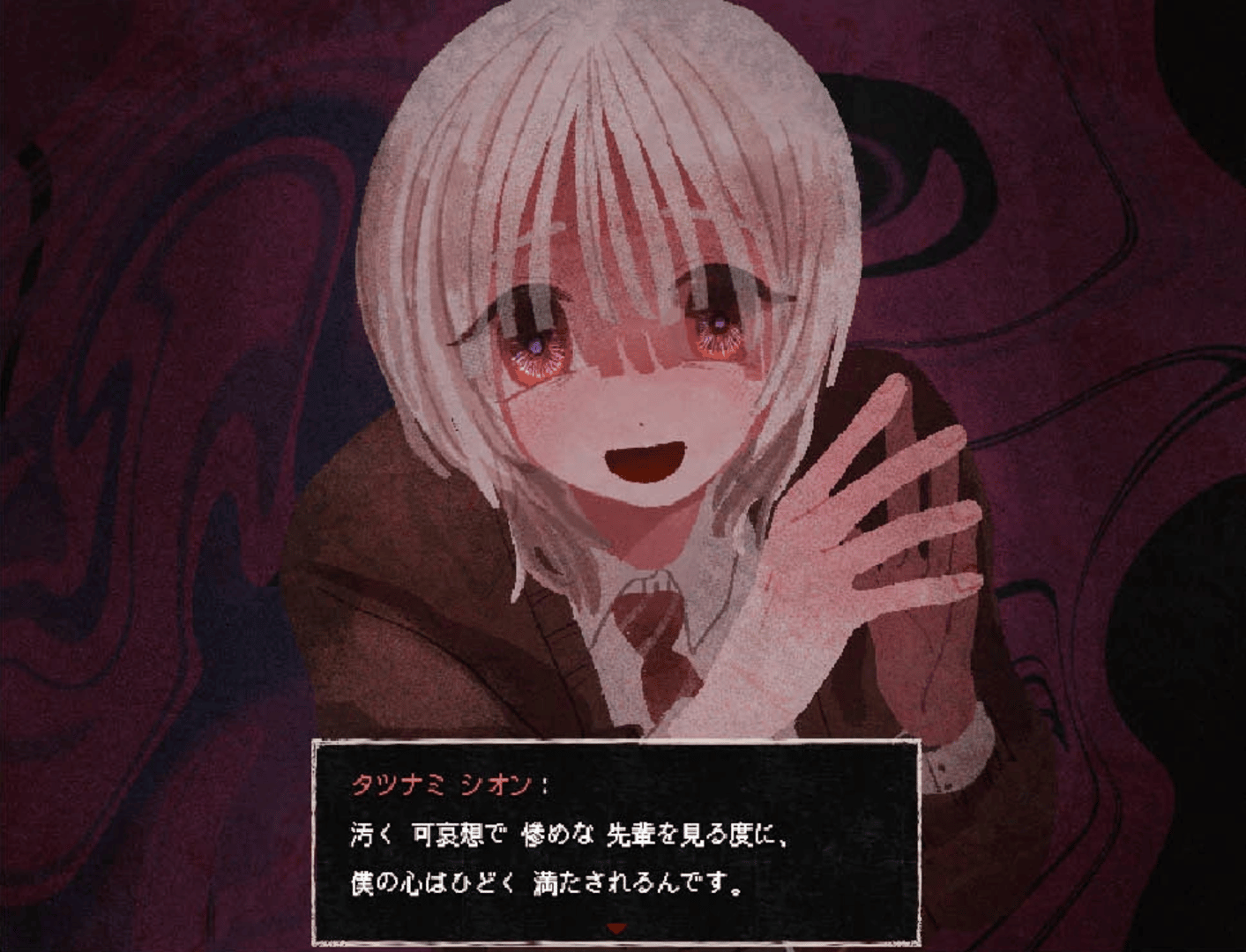 A love and hate bromance exploration horror ADV that depicts the codependency and perverted love between two men.