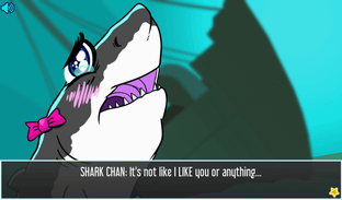 Shark Dating Simulator XL is a quick-to-play comedy visual novel with colorful cartoon characters, a multiple choice storyline and dozens of different endings. The only thing for sure is that at some point you'll make it with a shark girl. Go you!