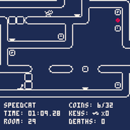 Speedcat is a tiny 2D platformer where you play as a cat trying to pick up all 32 Speedcoins! Run, jump, and use the environment to navigate your way through the map as quickly as possible. Developed on PICO-8 by Fletch, the game is delightfully small and easy to pick up, with an estimated completion time in under an hour.