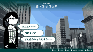 Tidal Therapy is a travel novel game for tired adults. A tired office worker heads to the sea. The setting is a quiet and beautiful sea town with a seaside park, warehouse district, and tower condominiums.