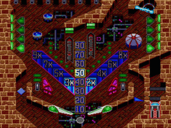 A sci-fi themed pinball game on the TurboGrafx-16. The pinball can activate time machines which sends it to bonus tables in different time zones. Time Cruise is a pinball game from FACE with a sci-fi theme and multiple tables. Unlike most pinball games with extended play zones, these tables are to the left and right of the core table, and the pinball can switch between them by passing through connecting tunnels. In addition, the player can power up time machines by hitting several levers with the pinball. Entering a time machine takes the pinball to a number of different time zones, each providing a possible score boost or extra ball.