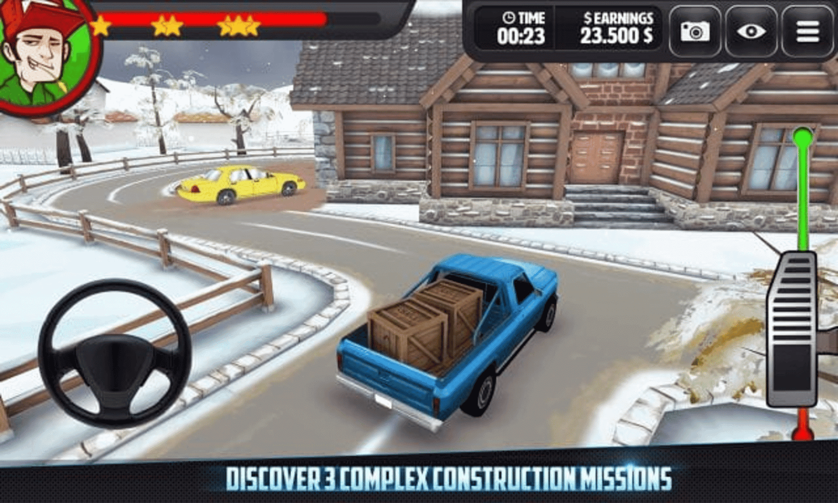Embark on a mission to construct different buildings and drive around in a variety of vehicles, from rusty old pick up trucks to shiny new American 18 Wheelers. Players will have to prove their truck driving skills in various conditions. Some of the levels will only require players to deliver materials to the construction site, while others will add to their quest, by giving them the opportunity to cash in on some bonus time points. Other levels will have players follow a big truck ahead of you, to test their ability to follow directions exactly as told. The game also features a variety of upgrades from pick-up trucks to lorry trucks and big trailers,
